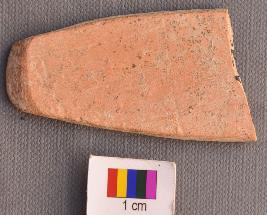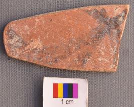 | Description / विवरण | It is a fragment of a Harappan pot sherd used on three sides whereas the fourth side is broken. It has thin section and has painted decoration on one side. |