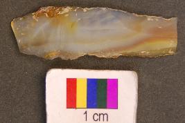 | Description / विवरण | It is fragment of a roughly parallel sided blade with retouched on both sides and thin section. |