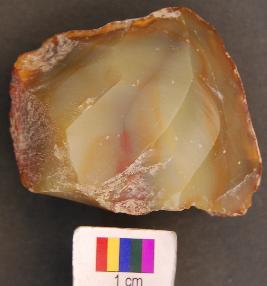 | Description / विवरण | It is fan shaped core with very thick section. It has been flaked on one face. |