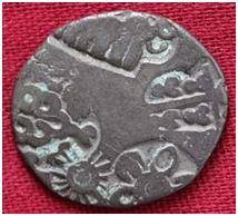 | Description / विवरण | The coin is an imperial type Punch- marked coin. The shape of the coin is oval. Obverse Sun, elephant, five arched mountain with crescent at the top, six armed wheel, human figure flanked by four taurines. Reverse Tree, circle and indistinct symbol. |