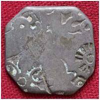 | Description / विवरण | The coin is an imperial type Punch- marked coin. The shape of the coin is irregular. Obverse Sun, six armed wheel, animal and three arched mountain. Reverse Indistinct symbol. |