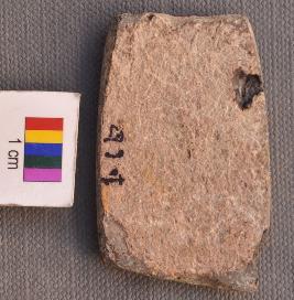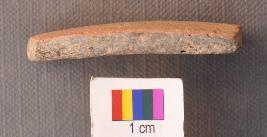 | Description / विवरण | It is a rectangular pot sherd, both longer opposite arms of which have use marks. |