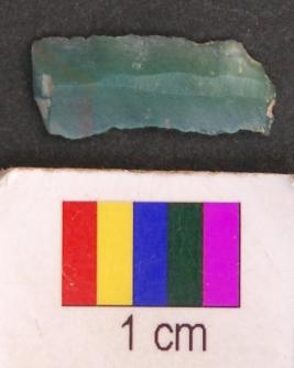 | Description / विवरण | It is fragment of a parallel sided blade of green chert with retouched on both sides and thin section. |
