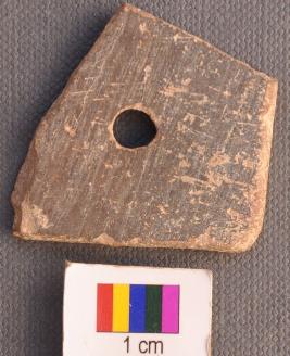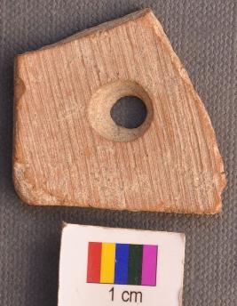 | Description / विवरण | It is a pot sherd, two of the arms of which have use marks, besides a perforation. |