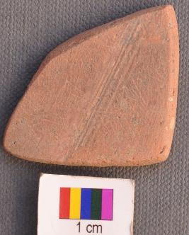 | Description / विवरण | It is a roughly triangular pot sherd, all the sides of which have use marks. |