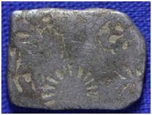 | Description / विवरण | The shape of the coin is rectangular. Obverse A Sun, a leaf and a three arched mountain. Reverse Blank. |