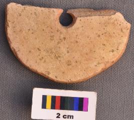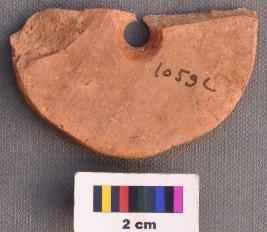 | Description / विवरण | It is a perforated terracotta disc, the perforation of which has damru shape profile. Its edge is well grind. |