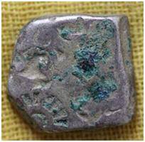| Description / विवरण | The shape of the coin is irregular. Obverse A Sun, a chakra, a srivatsa and other symbols are not visible due to silver sulphite formation. Reverse Blank. |