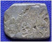 | Description / विवरण | The shape of the coin is hexagonal. Obverse Sun, three arched gate, caduceus and other symbols are not clear due to abrasion. Reverse Blank. |