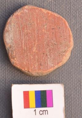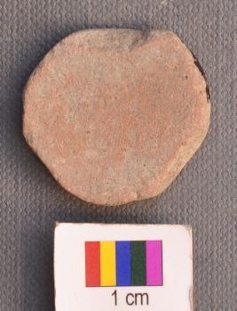 | Description / विवरण | It is a small circular terracotta disc partially broken on the edge. It has thin section. |