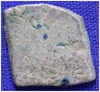 | Description / विवरण | The shape of the coin is irregular. Obverse chakra, swastika, taurine, tree and other symbols are not clear due to abrasion. Reverse Blank. |