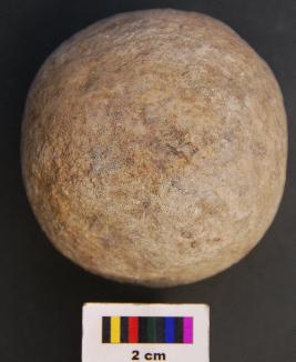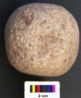 | Description / विवरण | It is fragment of a hammer stone with pecking marks. Its surface is partially polished too. |