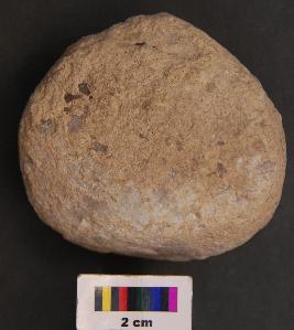 | Description / विवरण | It is fragment of a hammer stone with pecking marks. It is partially broken. |