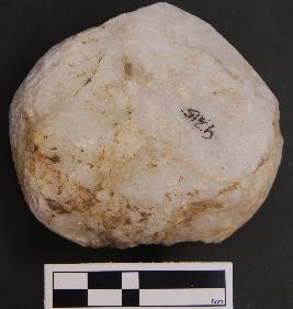 | Description / विवरण | It is fragment of a hammer stone with pecking marks. Its other half is missing. |
