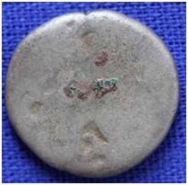 | Description / विवरण | The coin was imperial type of punch marked coin. The coin is circular in shape. Obverse A half dot within a half circle and three arched mountain. Reverse Blank. |