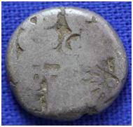 | Description / विवरण | The coin was imperial type of punch marked coin. The coin is circle in shape. Obverse chakra, tree, caduceus and six armed wheel symbols. Reverse A dot within a circle on its back a line and caduceus attached with it. |