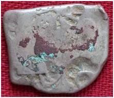 | Description / विवरण | The coin was imperial type of punch marked coin. The coin is irregular in shape. Obverse chakra, Sun, and two symbols are not clearly visible. Reverse A six armed wheel. |