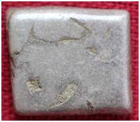 | Description / विवरण | The coin was imperial type of punch marked coin. The coin is square in shape. Obverse Symbols are not clearly visible due to abrasion. Reverse Blank. |