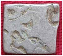 | Description / विवरण | The coin was imperial type of punch marked coin. The coin is irregular in shape. Obverse circle within a big circle, six armed wheel within a circle, human figure above it. Reverse six armed wheel symbol and other symbol is not visible. |