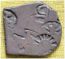 | Description / विवरण | The coin is an imperial type punch marked coin. The shape of the coin is irregular. Obverse three arched gate, six armed wheel wheel, chakra, four taurines around a circle. Reverse Blank. |