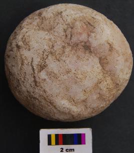 | Description / विवरण | It is a hammer stone the surface of which has pecking marks and has circular body. Its surface is partially polished. |