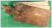 | Description / विवरण | Three plate strung together on a copper ring. The obverse of the first and third plate is left blank. There are altogether 32 lines of writing on the plate. The seal contains a lion below which is the legend Nettabhanja Devasya . The language of inscription is Sanskrit Script is Protonagari. The object of the grant is to record the gift of the plot of the land in the village Atai by Nettabhanja deva. |