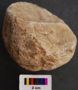 | Description / विवरण | It is a hammer stone the surface of which has pecking marks and has circular body. Its body is partially broken. |