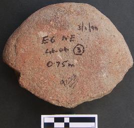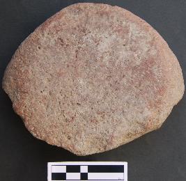 | Description / विवरण | It is a circular stone with flat sides. It may have been used as a pounder as it has pounding marks. |