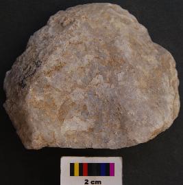| Description / विवरण | It is fragment of a hammer stone the surface of which has pecking marks and has circular body. |