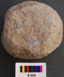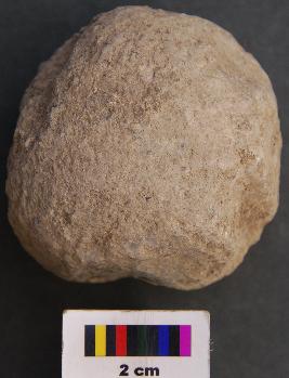 | Description / विवरण | It is a hammer stone with circular body and partailly flattened and broken surface. It has pecking marks on the surface. |