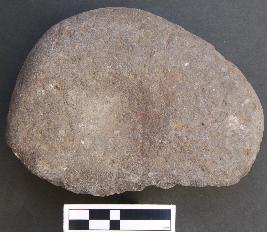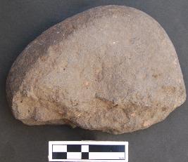 | Description / विवरण | It is a dressed stone object, both sides of which has a shallow depression perhaps for grinding. It is partially broken, thought it may have been a rectangular or squarish object. |