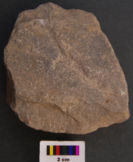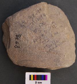| Description / विवरण | It is fragment of a muller stone with semi circuar face and flatish rear side. It has polished surface. |