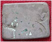 | Description / विवरण | The coin is an imperial type of Punch- marked coin. The shape of the coin is rectangular. Obverse Symbols are not clear due to abrasion. Reverse Blank. |
