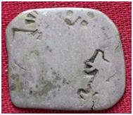 | Description / विवरण | The coin is an imperial type of Punch- marked coin. The shape of the coin is square. Obverse Sun, caduceus, dog, an indistinct symbol. Reverse Symbols are not clear due to abrasion. |