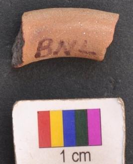 | Description / विवरण | It is fragment of a bangle with circular section and thick body. It is made of fine clay and has fine surface treatment. |
