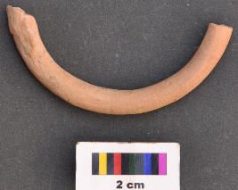 | Description / विवरण | It is fragment of a bangle with circular section and thick body. It is made of fine clay. It has lute mark. |