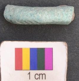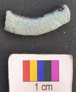 | Description / विवरण | It is a fragment of faience bangle with triangular section and set of thin grooved parallel lines on the outer surface. |