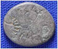 | Description / विवरण | The shape of the coin is oval. Obverse Sun, six armed wheel and an indistinct symbol. Reverse An indistinct symbol. |