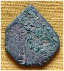 | Description / विवरण | The shape of the coin is irregular. Symbols are not distinct due to silver sulphite formation on the surface of coin. |