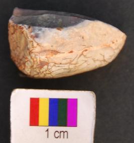 | Description / विवरण | It is a small fluted core from which thin microblades have been removed from one face. |