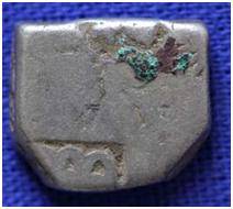 | Description / विवरण | The coin is an imperial type of Punch-marked coin. The coin is irregular in shape. Obverse Sun, caduceus and other symbols are indistinct due to abrasion. Reverse Symbols are not distinct. |
