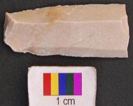 | Description / विवरण | It is a parallel sided blade with retouched sides. Its distal end is missing. |