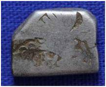 | Description / विवरण | The coin is an imperial type of Punch-marked coin. The coin is irregular in shape. Obverse Mountain, six armed wheel and other symbols are indistinct. Reverse Blank. |