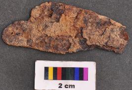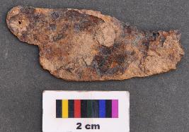 | Description / विवरण | It is a knife of thin sheet, the distal end of which is missing. It has a tang in which a small perforation is made. |
