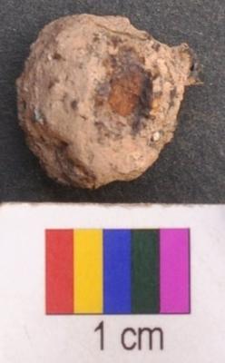 | Description / विवरण | It is a small iron ball with tiny knob attached to it. It may be part of jewellery. It is encrusted with soil. |