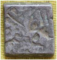 | Description / विवरण | The coin is an imperial type of Punch-marked coin. The coin is square in shape. Obverse Sun, two arched hill, six armed wheel and other symbols are indistinct. Reverse Symbols are not distinct. |