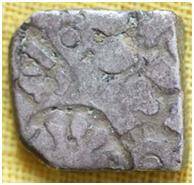 | Description / विवरण | The coin is an imperial type of Punch-marked coin. The coin is irregular in shape. Obverse Tree, Sun, six armed wheel and other symbols are indistinct. Reverse Mushroom and an indistinct symbol. |