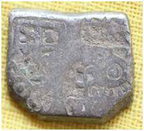 | Description / विवरण | The coin is an imperial type of Punch-marked coin. The coin is irregular in shape. Obverse Sun, Caduceus, tree, six armed wheel and other symbols are indistinct. Reverse An indistinct symbol. |