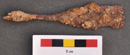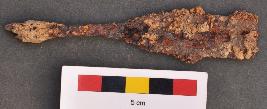 | Description / विवरण | It is a spear head with a long thin tang. Its distal end is missing and body part is also broken. |