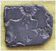 | Description / विवरण | The coin is an imperial type of Punch- marked coin. The shape of the coin is irregular. Obverse Sun, tree, six armed wheel, animal and other symbols are indistinct. Reverse Sun, Nandipada, flower and other symbols are indistinct. |